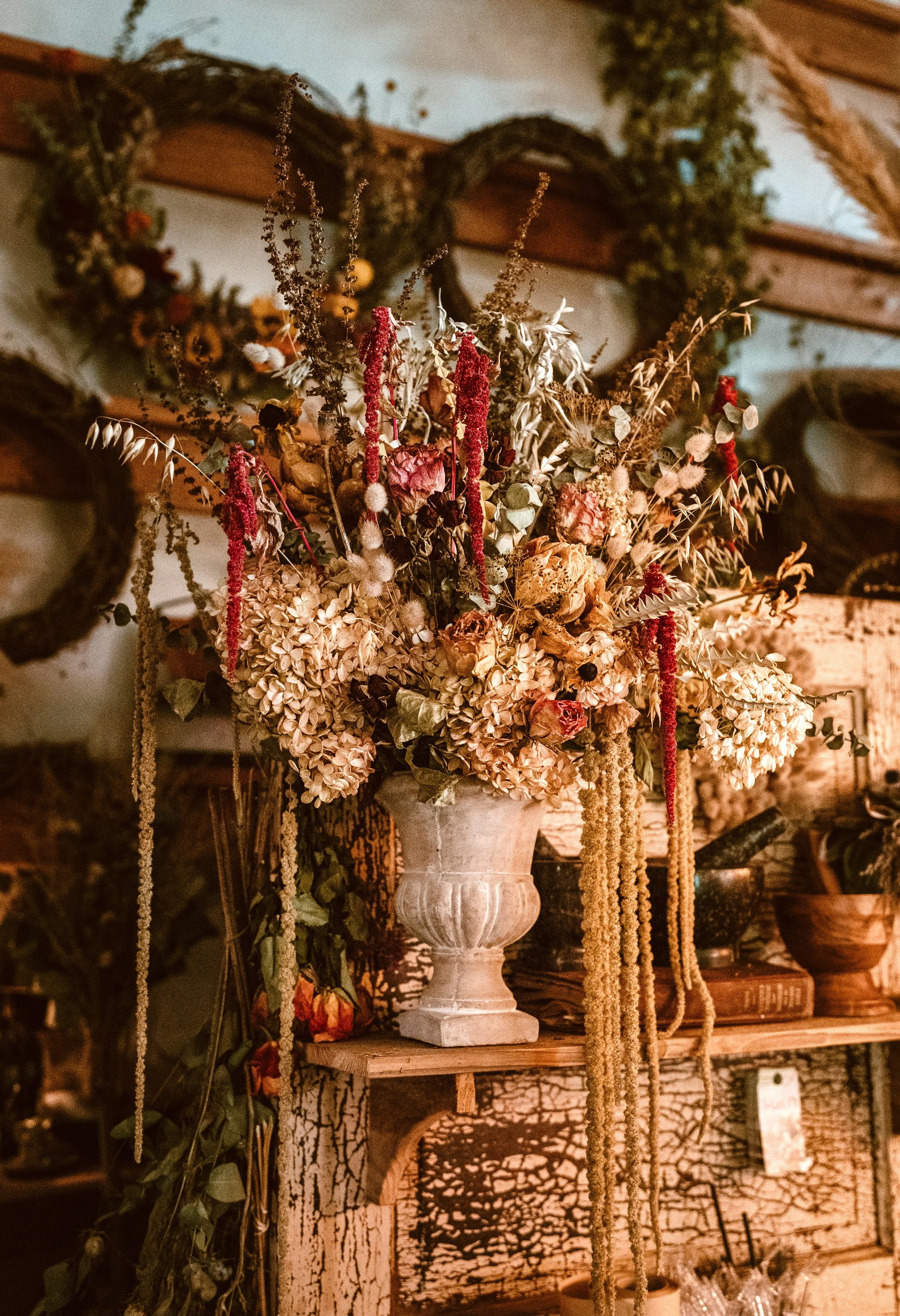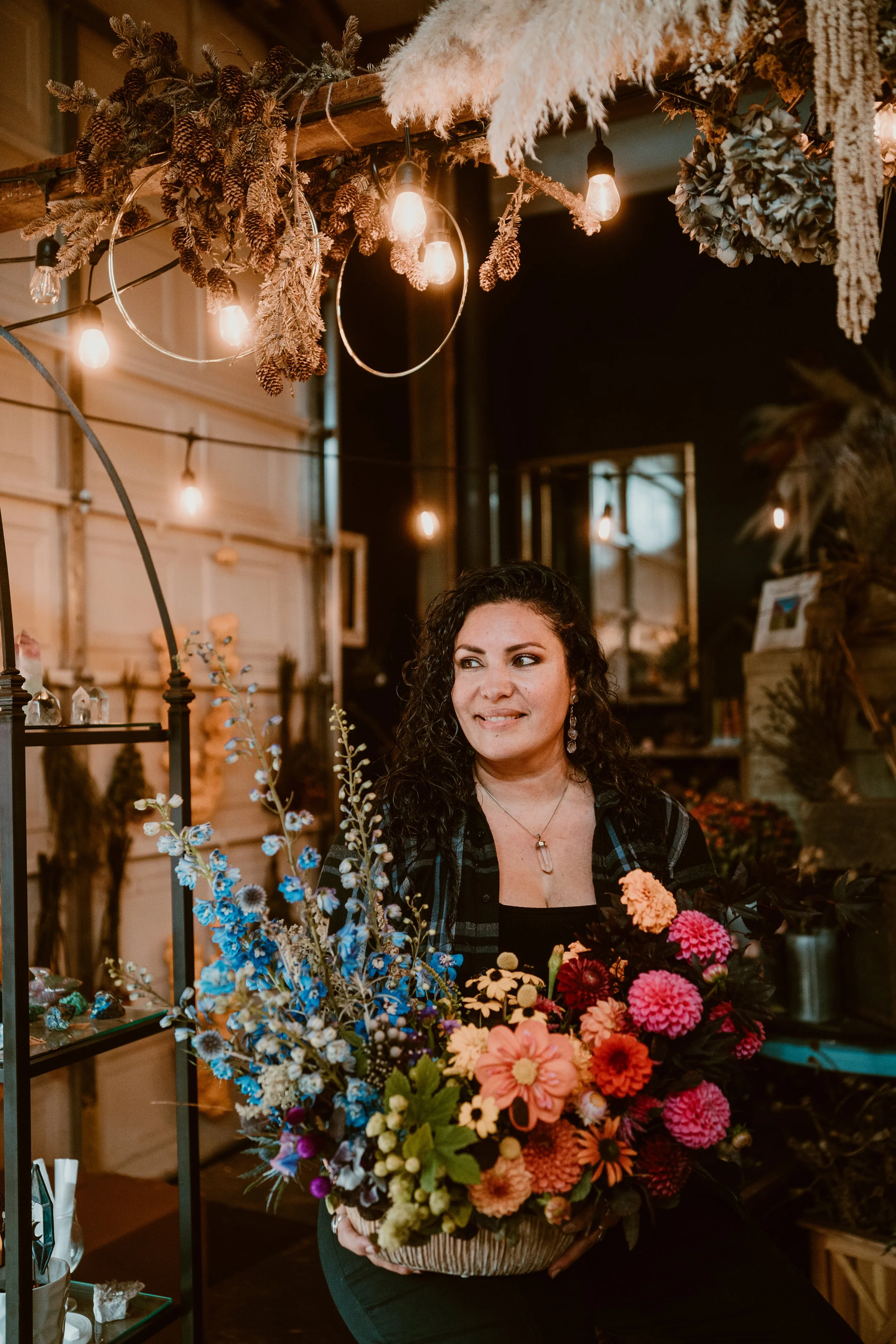 Boost the mood in your home, business, or office with Angela's Custom Floral Designs. Beyond making a room gorgeous, flowers bring positive emotions to those who enter a room, making the space more inviting and calming. Evergreen Flower Farm offers custom floral designs working with all forms of nature. Angela is well known for her creative wall installations and working with dried flowers and plants. Her pieces are all unique, designed to fit the space and the aesthetic and creative vision of her clients.